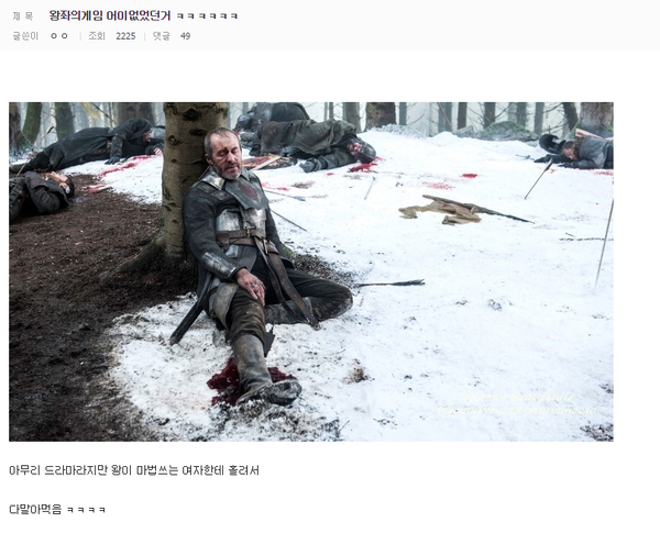 | Subject | 왕좌의 게임 설정 바보 같지 않냐 ㅋㅋ |