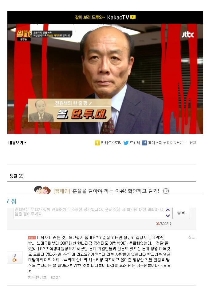 | Subject | 전원책 일침을 날렸으나 베플에게 일침당함.jpg |