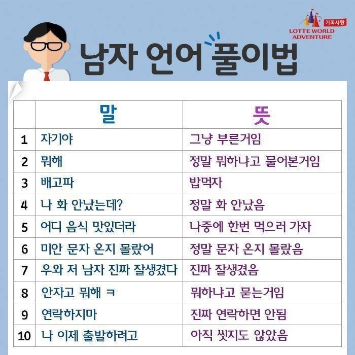 | Subject | 이것만 알면 남자 정복 완료! - 남자 언어 풀이법 |