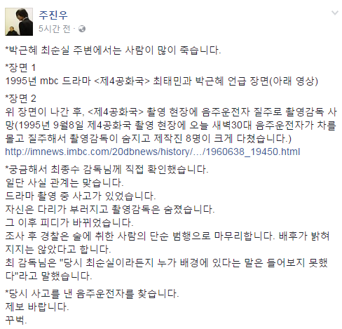 | Subject | 박근혜 최순실 주변에서는 사람이 많이 죽습니다 |