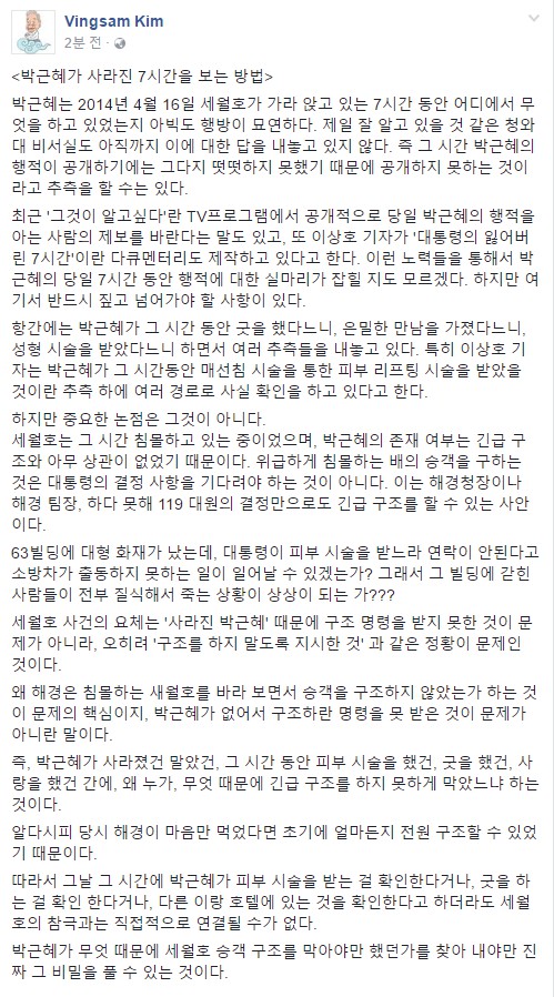 | Subject | 김빙삼 옹 - 박근혜가 사라진 7시간을 보는 방법 |