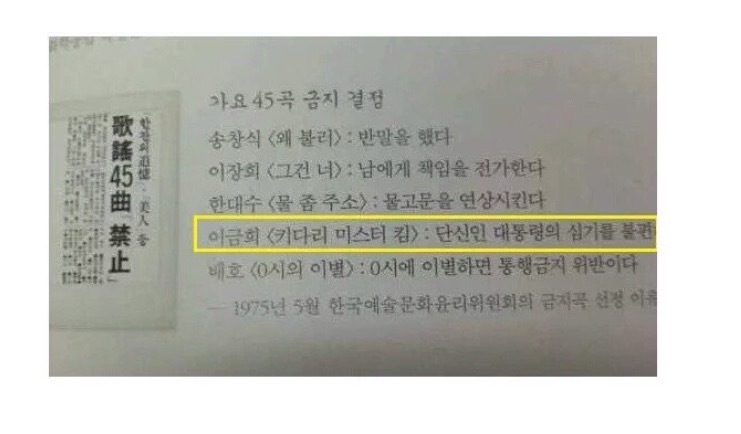 | Subject | 박정희 정권 시절 금지곡 선정 이유 |