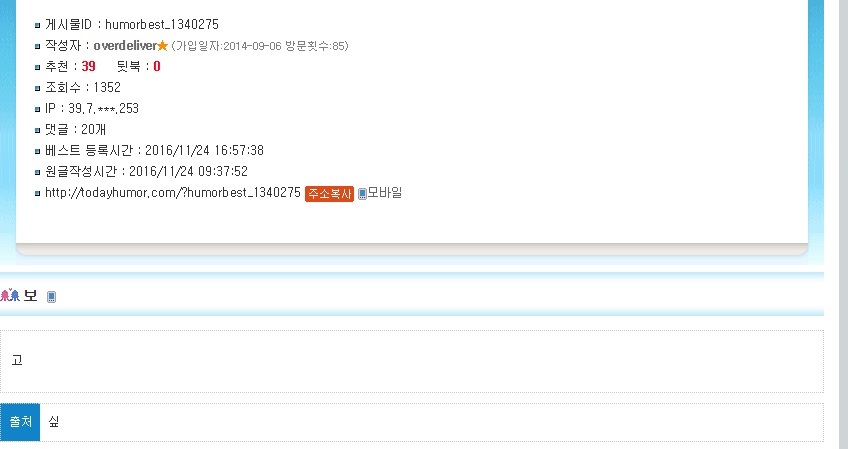 | Link #1 | http://m.todayhumor.co.kr/view.php?table=humorbest&no=1340275 |