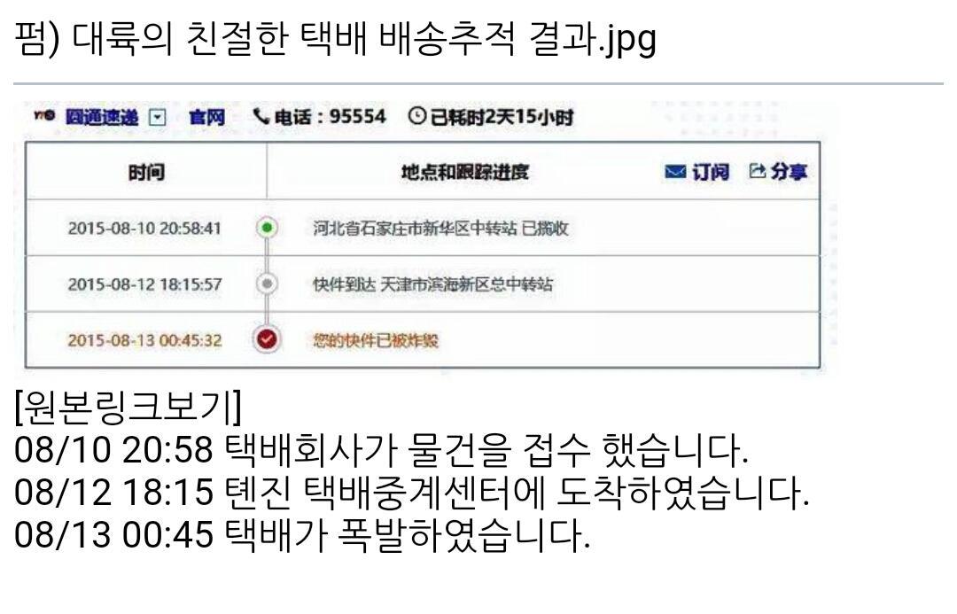 1670 [블랙유머] 중국의 정직한 택배 배송추적 1 西木野真姫 15/08/14 4188 0