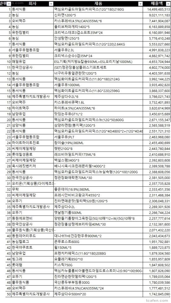 Subject   한국인들이 많이 구입하는 제품 베스트 50