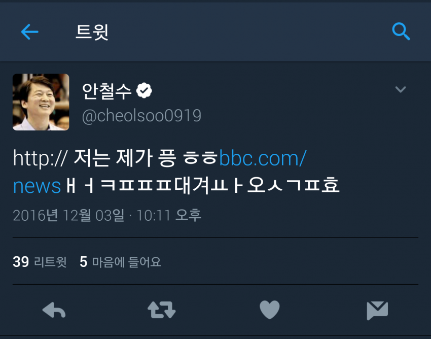 16909 안철수 트위터에 심경고백 1 하니n세이버 16/12/04 1966 0