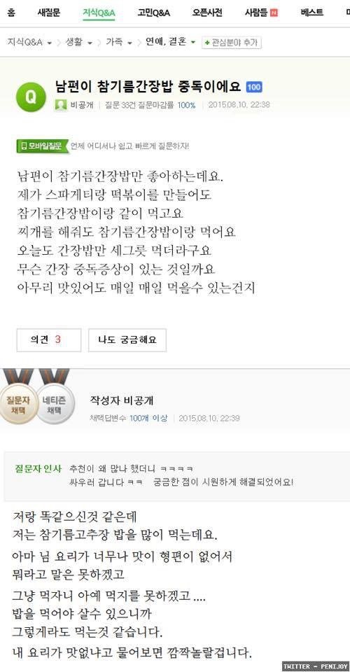 | Subject | 남편이 참기름간장밥 중독입니다 |