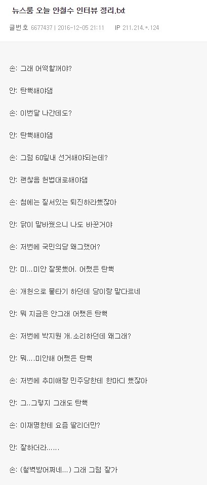 | Subject | 뉴스룸 안철수 인터뷰 요약 |