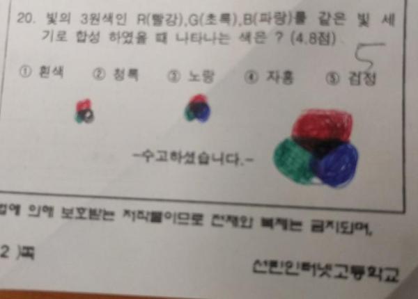 빛의 삼원색하고 색의 삼원색은 조합 결과가 서로 다르다고 합니다. 0
