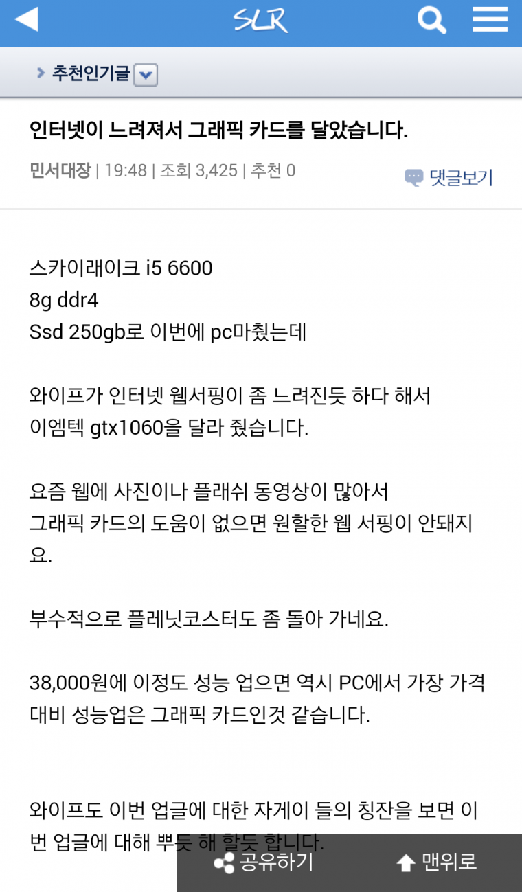 | Subject | 인터넷이 느려져서 그래픽카드를 달았습니다 |