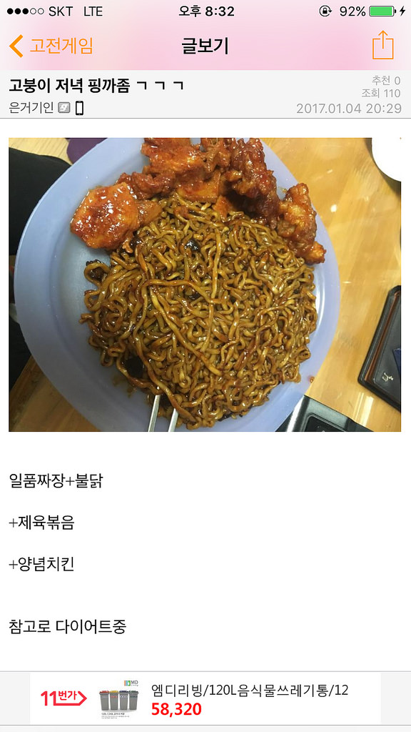 저런 음식 올리면서 다이어트 중이라니까 음식물 쓰레기통 광고해주는 귀신같은 광고 알고리즘. 0