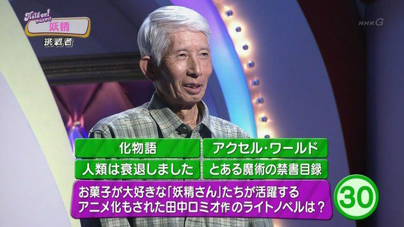 일본 NHK에서 방영하는 퀴즈 프로그램. 마지막 문제의 상금은 천만 엔, 그리고 문제를 푸는 도전자는 백발의 어르신..
