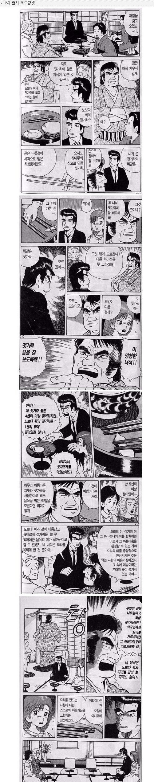 예의 예법을 그리도 중시한다는 양반이 멀리서 온 손님 앞에서 아들놈이 젓가락질 잘 못한다고 고래고래 난동부리고 밥상 엎은 격. 0