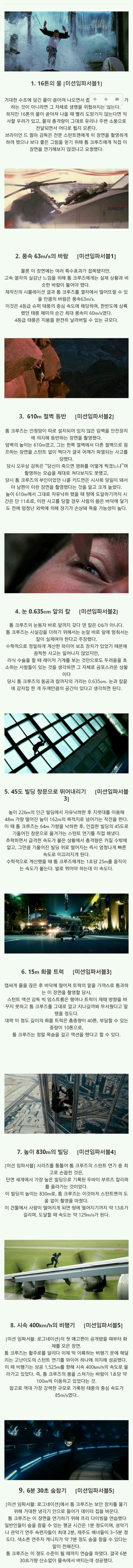 | Subject | 미션임파서블 촬영 비화 |