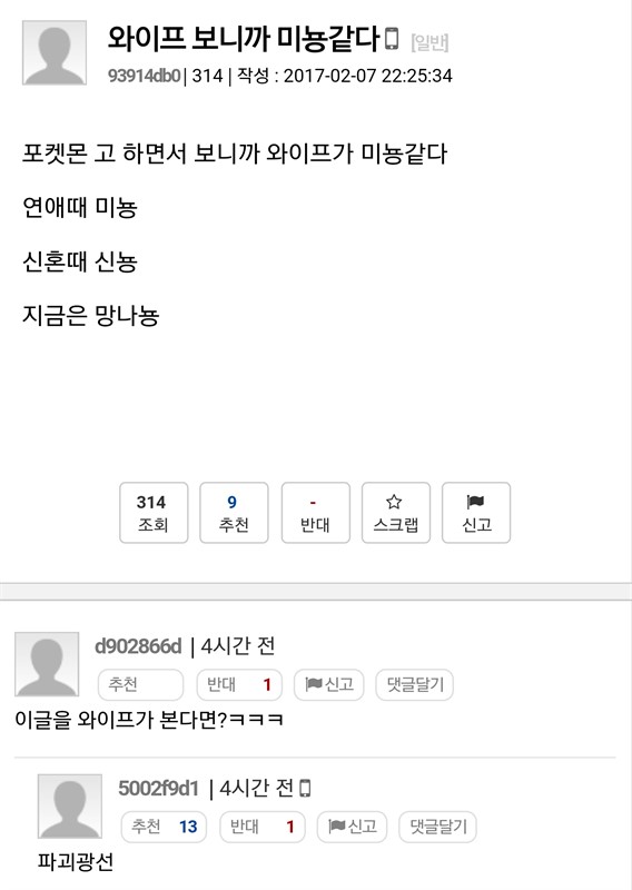 - 유머가 아닌 펌글, 영상 등 가볍게 볼 수 있는 글들도 게시가 가능합니다.