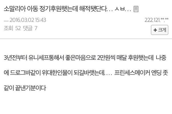 유니세프는 1:1 결연 프로그램이 없는데, 주작이겠죠? 0