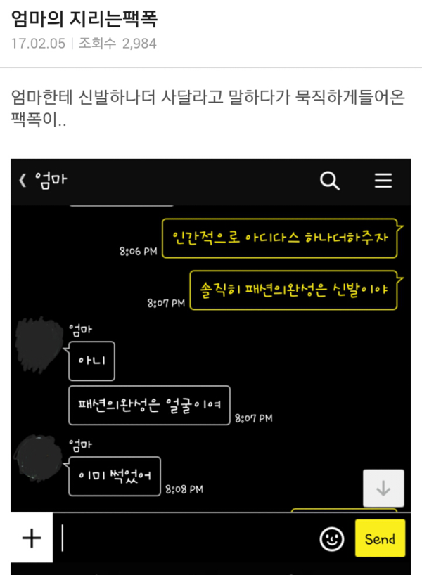 | Subject | 어머니의 팩트폭력 |