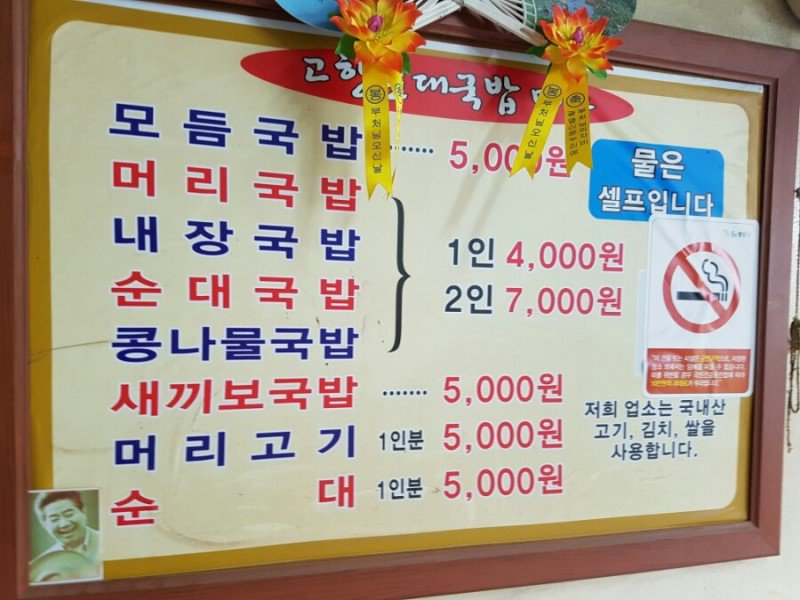 | Subject | 국밥 1인 4천원, 2인 7천원. |