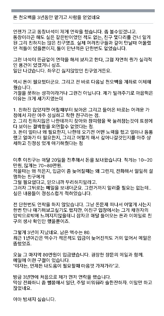 19963 1500만원 맡기고 사람 한명 얻었습니다.jpg 5 김치찌개 17/02/22 3749 0