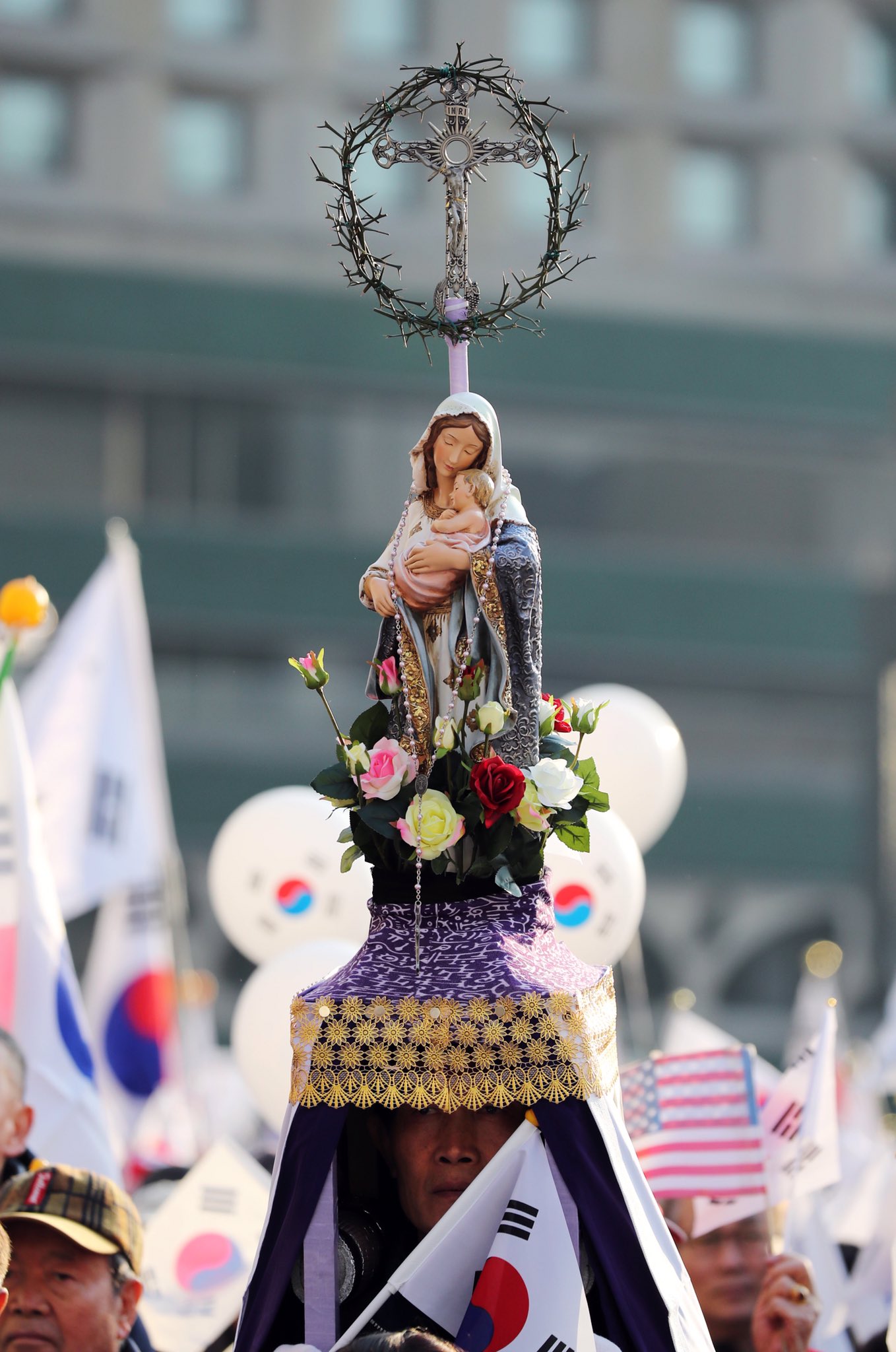 태극기? 집회 풍경이랍니다. 성조기 들고 나오는 것도 이해하기 어렵지만 이건 도대체 어떤 경로로 생각을 해야 저렇게 행동할 수 있는 건가요. 0