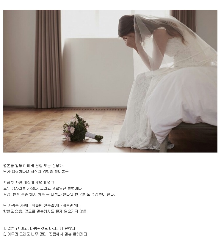 결혼 전 상대의 과거를 알았을때 허용범위 0