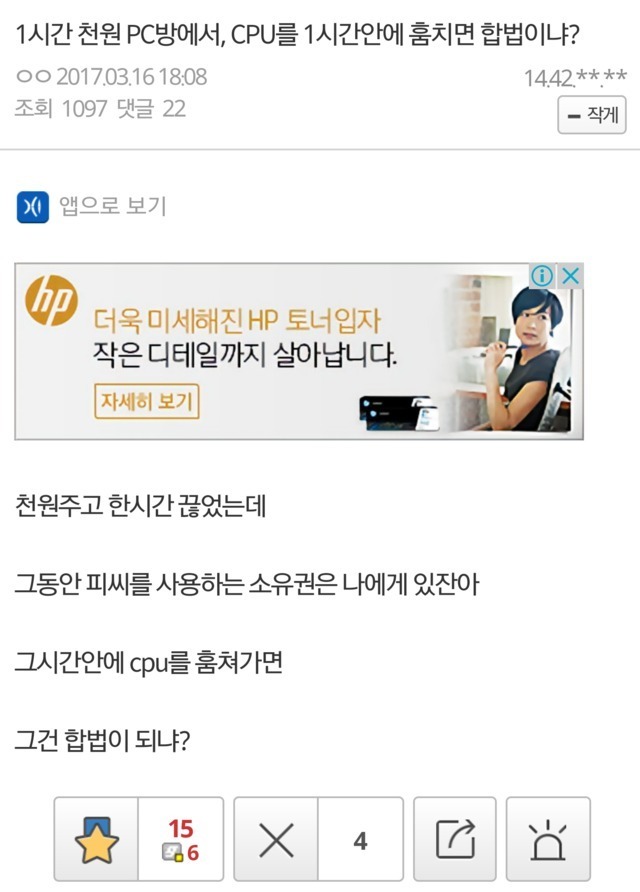 | Subject | 피씨방 컴퓨터 소유권 분쟁 |