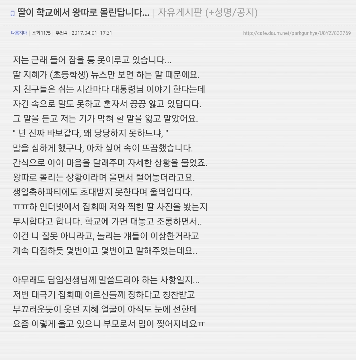 | Subject | 딸이 학교에서 왕따당하는 이유 |