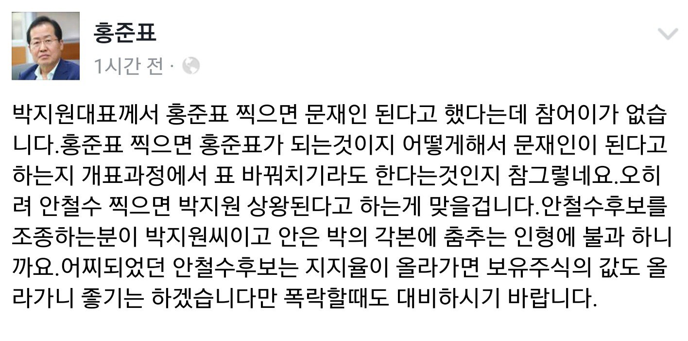 | Subject | 레드준표 페북 |