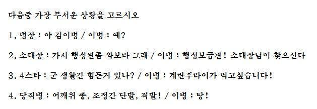 군대 다음 중 가장 무서운 상황을 고르시오 0