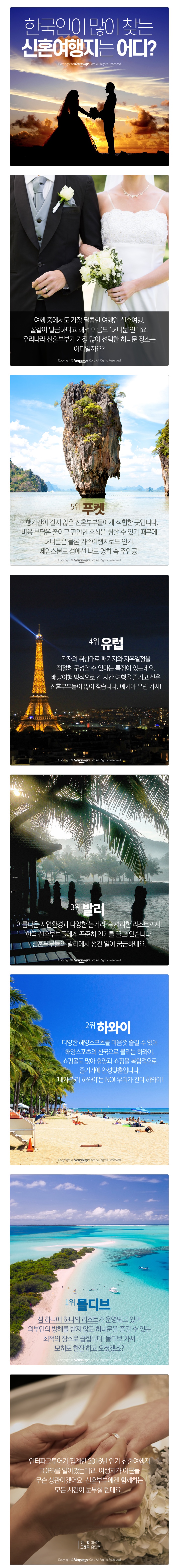 | Subject | 한국인이 많이 찾는 신혼여행지 TOP 5 |