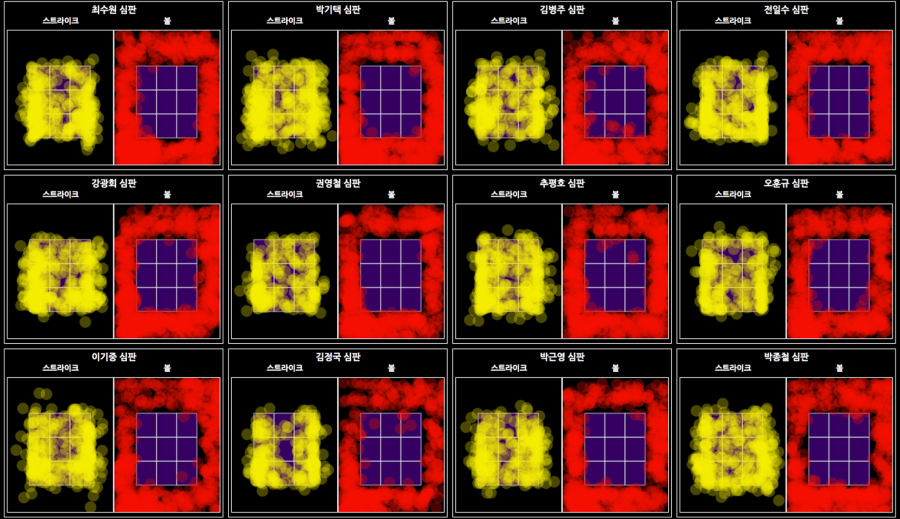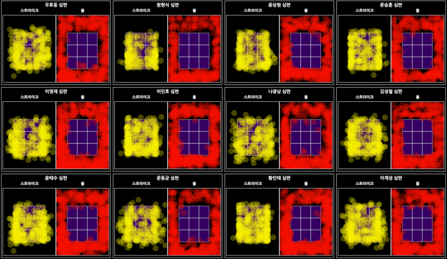 그래서 엠팍 Tamm님이 직접 5/6까지 심판들의 스트/볼 궤적을 이미지로 만들었습니다.