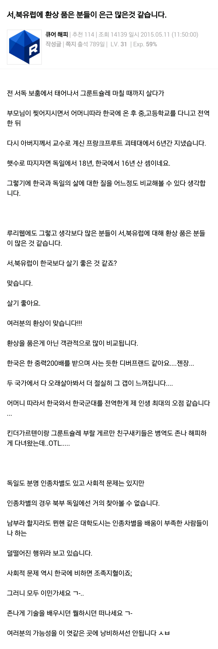 | Subject | 유럽에 환상을 품은 분들이 은근 많은 것 같습니다 |