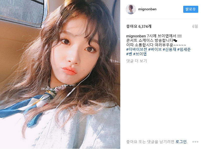 세상에서 가장 예쁘고 깜찍하고 터프하고 멋지고 노래 잘부르는 가수인 벤양의 오빠야 영상을 띄워요. 벤 오빠야1 위의 영상이 나온 전체영상(팬럽) 벤 오빠야2 위의 영상이 나온 전체영상(이번에 하는 더 바이브 콘서트 홍보 v앱) + 팬럽2 팬럽3 (팬럽은 팬이랑 소통하는 앱인데, 딱 3번 하고 이제 더 이상 안 하는 듯..?) 0