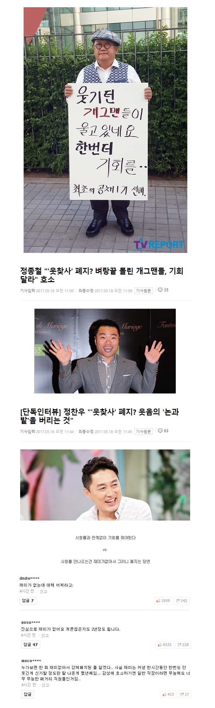 | Subject | 요즘 프로그램폐지 위기의 웃찾사를 둘러싼 논란.jpg |