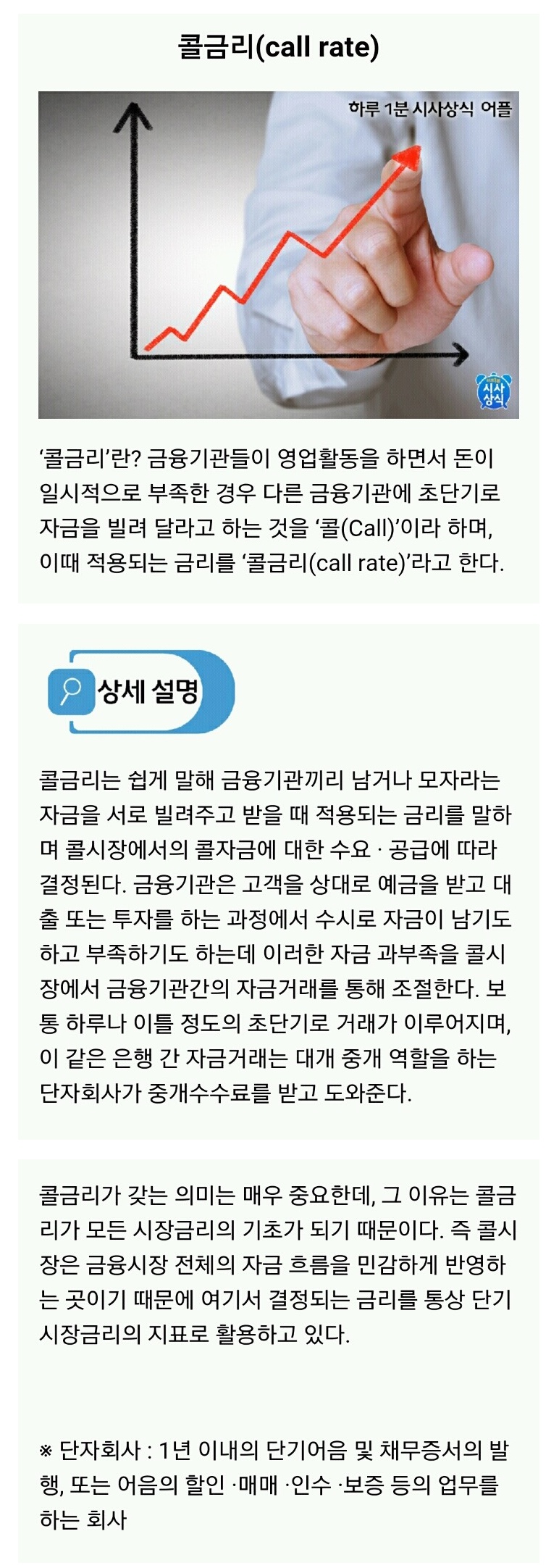 | Subject | 하루 1분 시사상식 97 - 콜금리 (call rate) |