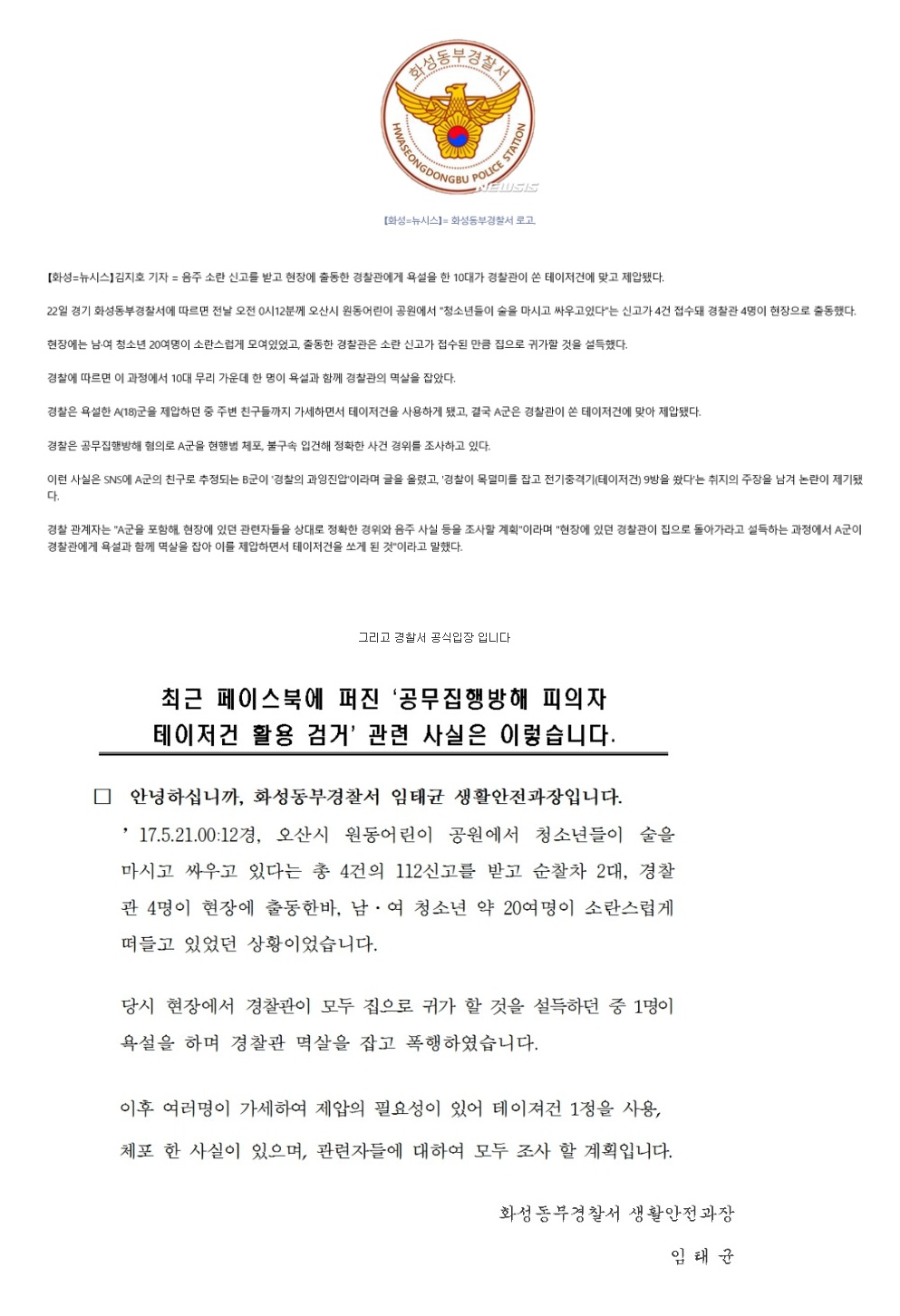 | Subject | 경찰관에게 욕설한 10대 테이저건 쏴 제압.jpg |