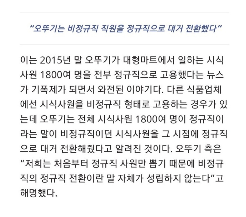 오뚜기 정규직 전환은 거짓말 0