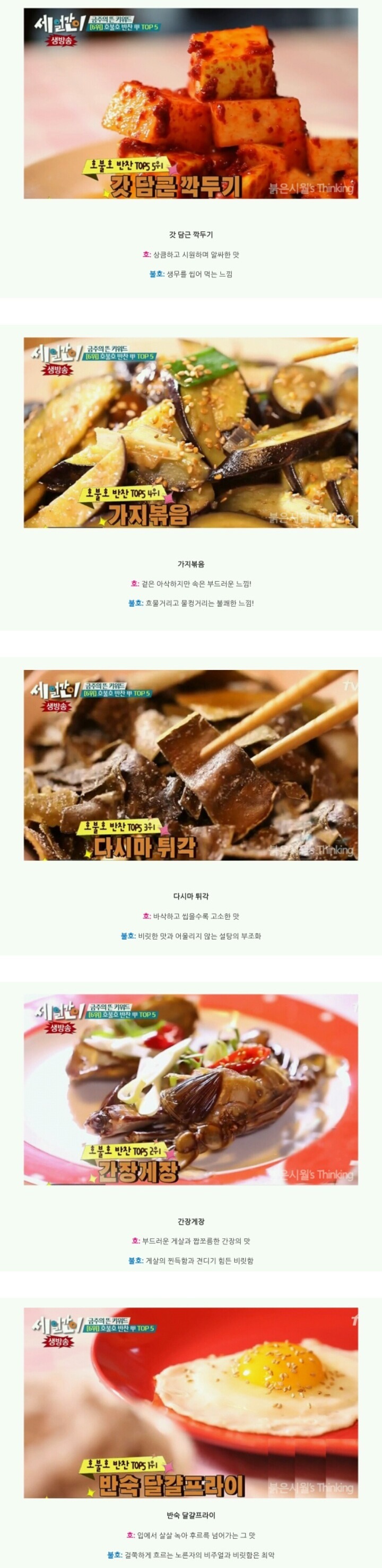 | Subject | 호불호 갈리는 반찬 TOP5 |