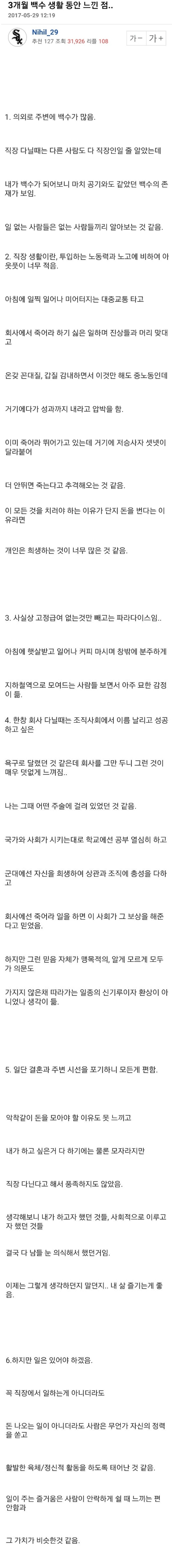 Subject   3개월 백수 생활하면서 느낀 것들