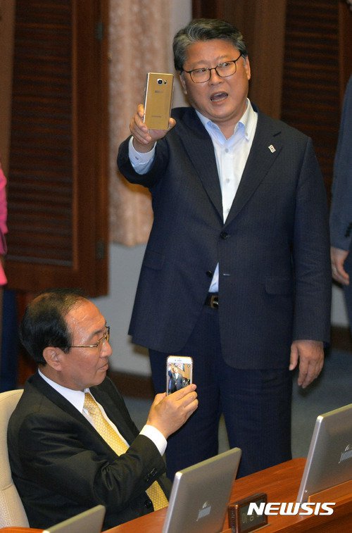 총리인준안 상정이 불법이라 촬영하는 조원진을 촬영하는 노회찬을 촬영하는 뉴시스사진기자 0