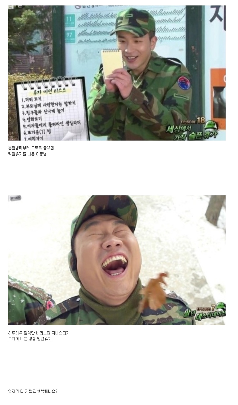 | Subject | 이등병 백일휴가 VS 병장 말년휴가 |