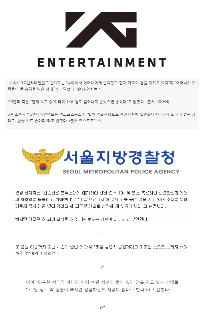 YG 엔터테인먼트와 서울지방경찰청의 공식입장 차이.jpg 0