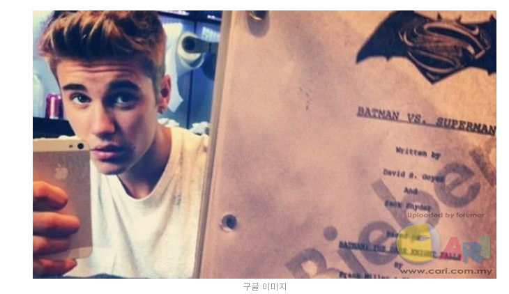 배트맨 vs 슈퍼맨 대본을 들고있는 저스틴비버