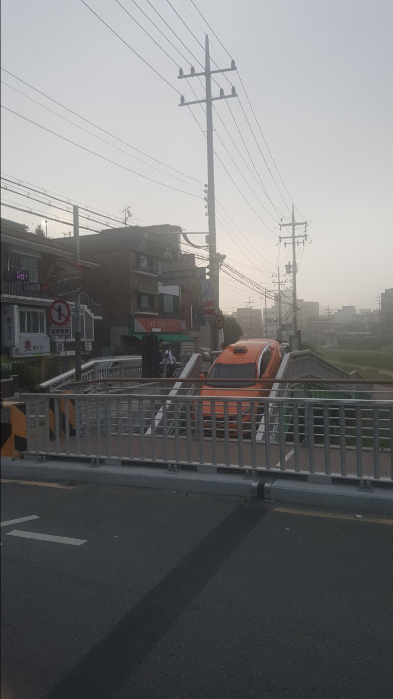 오늘 아침 출근길 풍경이었습니다. 위치는 목감천 개봉동과 광명동 사이 다리에서.. 경찰들도 난감해서 멍하니..하늘만 바라보고 있었다는.. (실제 본인 촬영) 0