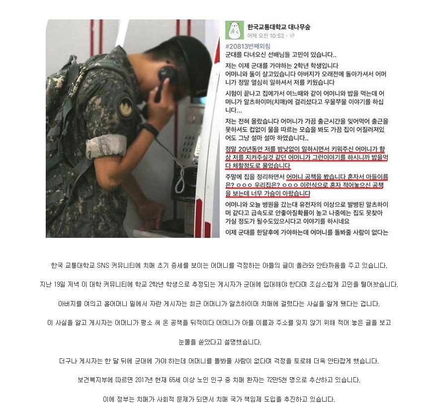 | Subject | 군입대 앞둔 아들, 알츠하이머 어머니 걱정에 눈물.jpg |