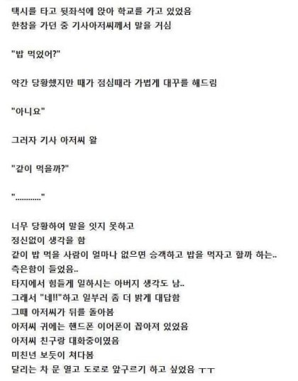 | Subject | 택시기사 : 같이 밥 먹을까? |