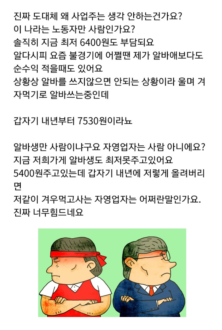 갑자기 이런식으로 최저시급을 올리는게 어딨나요?.jpg