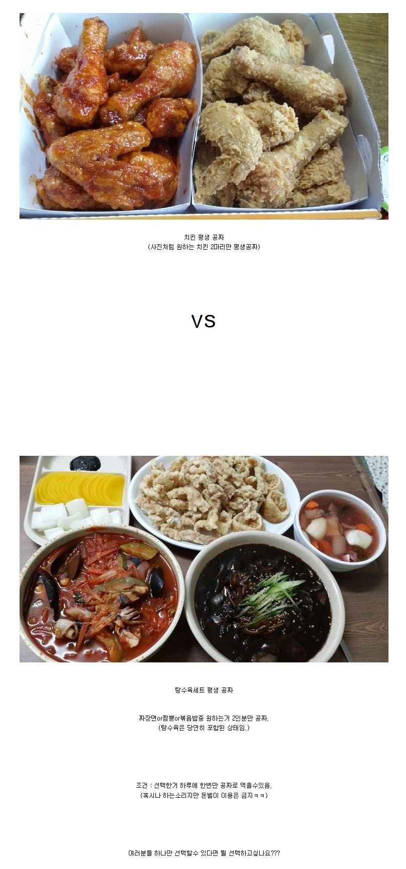 | Subject | 치킨 평생 공짜 vs 탕수육세트 평생 공짜.jpg |