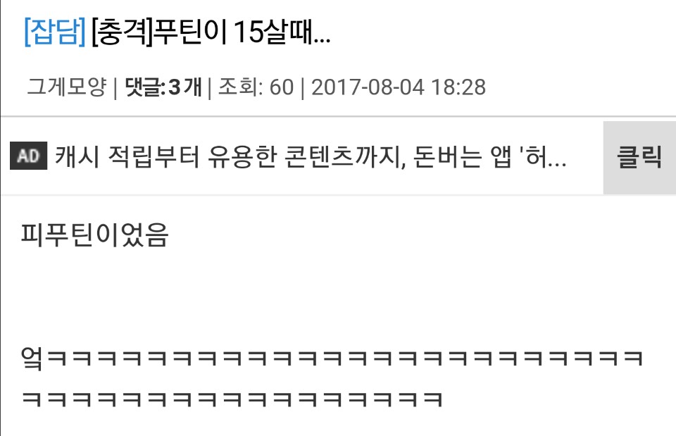 - 유머가 아닌 펌글, 영상 등 가볍게 볼 수 있는 글들도 게시가 가능합니다.