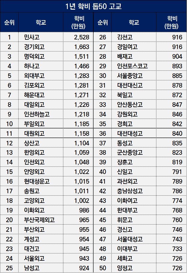 민사고야 독보적이고.. 이게 등록금+급식비+기숙사비 등이라는데, 제가 졸업한 곳은 기숙사가 없는데도 등록금발로 상위에 랭크되는 위엄을 보여주고 있군요. 0